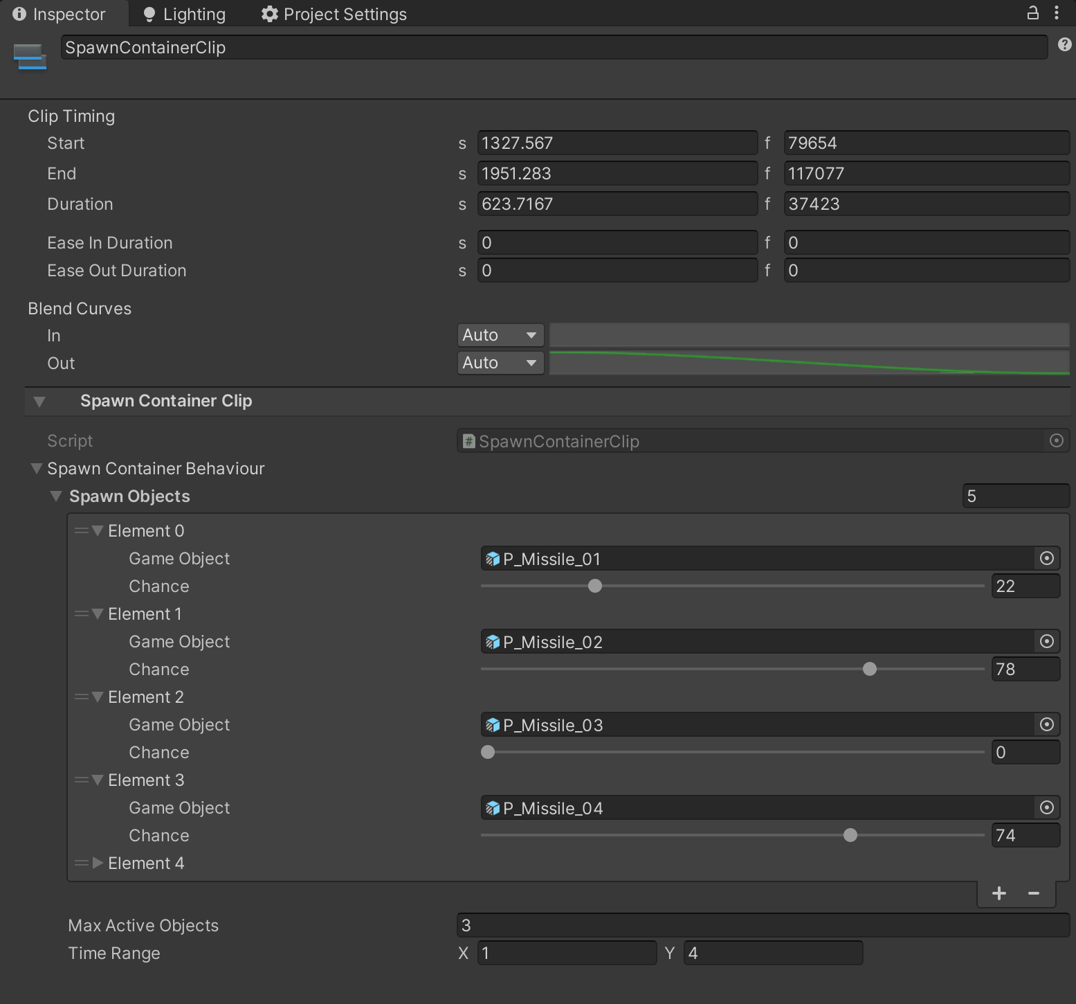 Custom timeline tracks were made using editor scripting to provide a way of designing the levels and spawning of missiles.